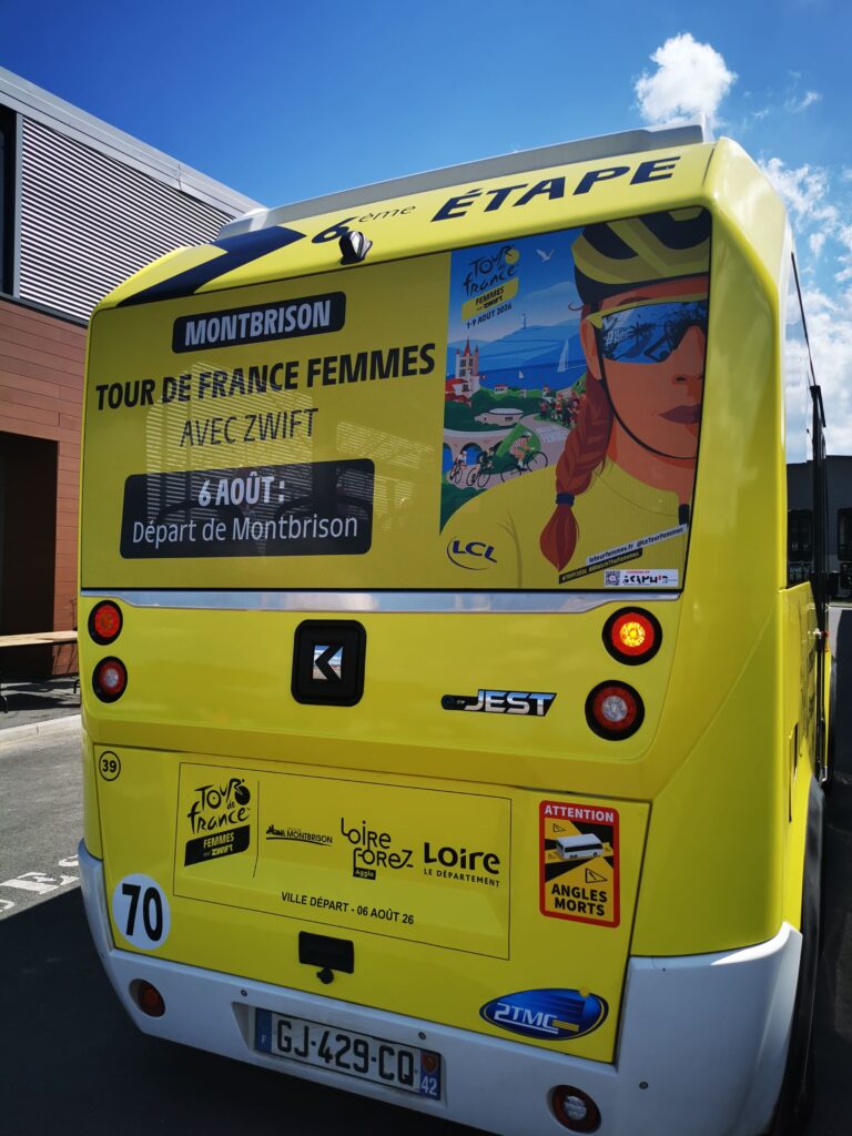 À cette occasion, une des navettes de Loire Forez qui sillonne le territoire entre Montbrison et Savigneux a été entièrement redécorée aux couleurs du Tour de France.